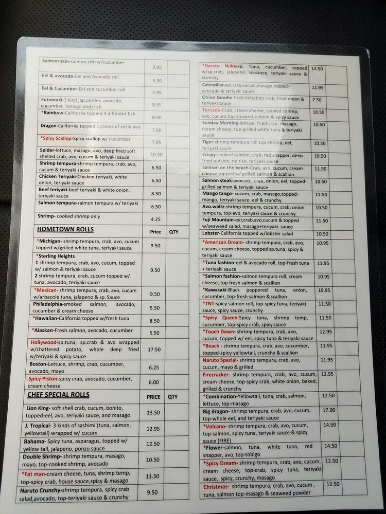 Naruto Sushi, located in Sterling Heights, MI, offers a wide range of sushi dishes and appetizers such as Shrimp Shumai, Chicken Teriyaki, and Fried Gyoza. The restaurant also serves delicious soups like Miso Soup and Dumpling Soup, as well as refreshing salads including Spicy Crab Salad and Seaweed Salad. Customers praise the fresh and high-quality ingredients, with favorites like the spicy tuna and Ton katsu receiving rave reviews. The cozy ambiance and friendly staff make dining here a pleasant experience. While some find the prices slightly steep, the overall dining experience at Naruto Sushi is worth it. Don't miss out on their lunch specials and the opportunity to try out their signature sushi rolls like the Kawasaki or Hollywood rolls. Naruto Sushi is a gem for sushi lovers looking for a delightful dining experience.